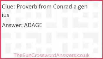 Proverb from Conrad, a genius - crossword puzzle clues ... Proverb from Conrad, a genius. Today's crossword puzzle clue is a cryptic one: Proverb from Conrad, a genius. We will try to find the right answer to this particular crossword clue. Here are the possible solutions for "Proverb from Conrad, a genius" clue. It was last seen in The Sun cryptic crossword.